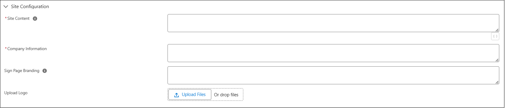 Site configuration – fields values of which will be later displayed on the Aveneer Sign page (section is unavailable if Without Signatures Record Type is selected):